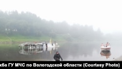 Судно поднимают на берег. Спасатели пытаются откачать воду, но пока безрезультатно, говорится в сообщении МЧС. Портал "Вологда.РФ" со ссылкой на очевидцев пишет, что судно могло затонуть из-за пробоины.