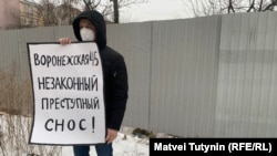 В Петербурге к руинам здания на улице Воронежской, 45 с пикетами вышли местные жители, передаёт корреспондент Север.Реалии. Люди протестуют против незаконного сноса старинного здания.