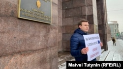 У входа в петербургское управление ФСБ на Литейном проспекте 26 декабря состоялся одиночный пикет. С плакатом в поддержку Алексея Навального и Любови Соболь вышел активист движения "Агит Россия" Павел Иванкин, передает корреспондент Север.Реалии.