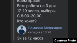 Источник Север.Реалии сообщил, что в общем чате общежития Санкт-Петербургского государственного технологического института появилось сообщение от Рамазана Меджидова, который предлагал "работу на выборах".