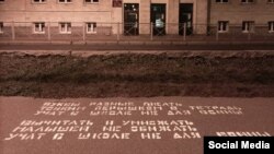В Петербурге возле одной из школ в день начала так называемых "Разговоров о важном" появилась антивоенная надпись. Об этом сообщается в телеграм-канале "Феминистского Антивоенного Сопротивления", подчеркивается, что надпись оставила "неопознанная группа лиц".